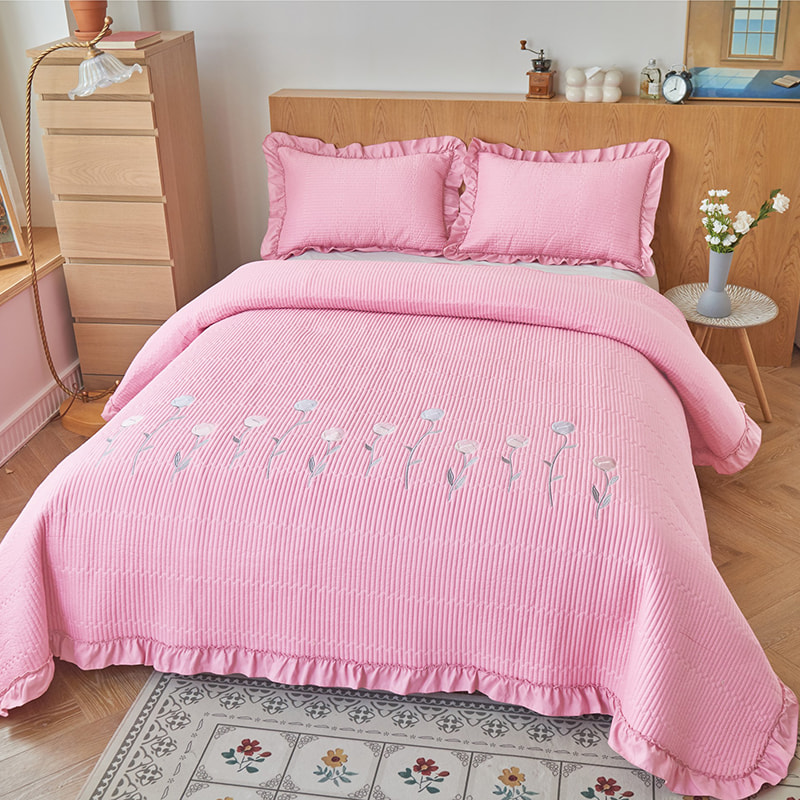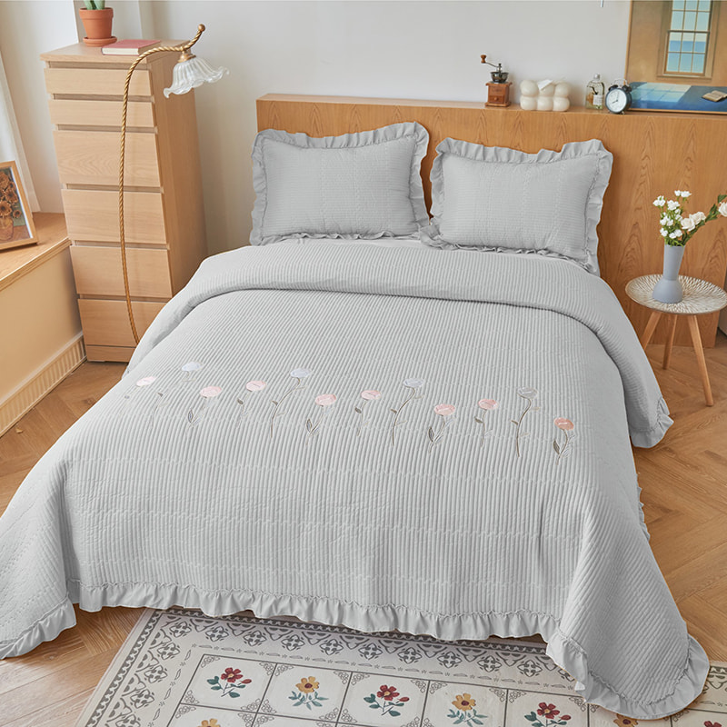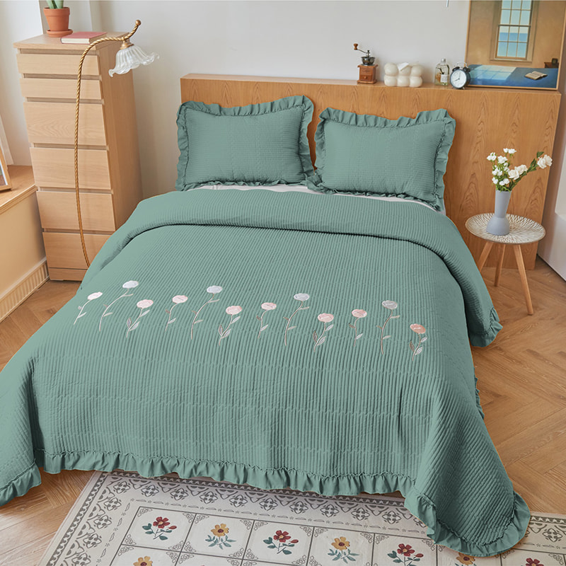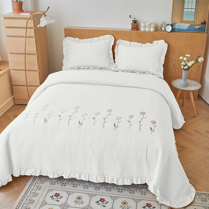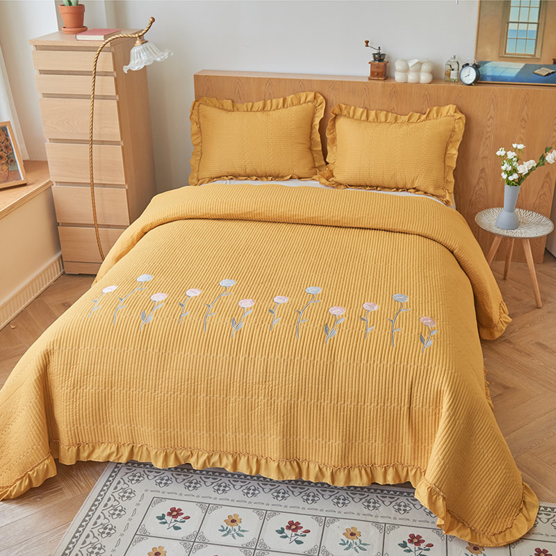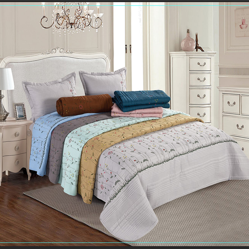 1. Изысканное мастерство и высококачественная текстура: это Стеганая вышитая крышка кровати Использует изысканная технология вышивки для создания трехмерного и тонкого шаблона, который не только улучшает визуальный и тактильный сорт, но также придает продукту уникальное художественное очарование. Использование тканей высокой плотности не только усиливает сопротивление морщин и устойчивость к износу продукта, но также сохраняет его плоско после стирки машины, легко ухаживать и простых в обслуживании. Nantong Noble International Trading Co., Ltd. прекрасно знает, что спрос клиентов на домашние текстильные продукты не ограничивается красотой, но также фокусируется на его практичности и долговечности. Комбинация технологии ткани и вышивки высокой плотности не только делает продукт долговечным и долговечным, но также имеет превосходную цветовую устойчивость, промытую и сухой, яркий и длительный цветовой, влажный и нелегкий для поглощения пыли, подходящих для различных сред.